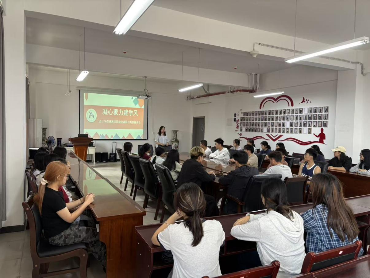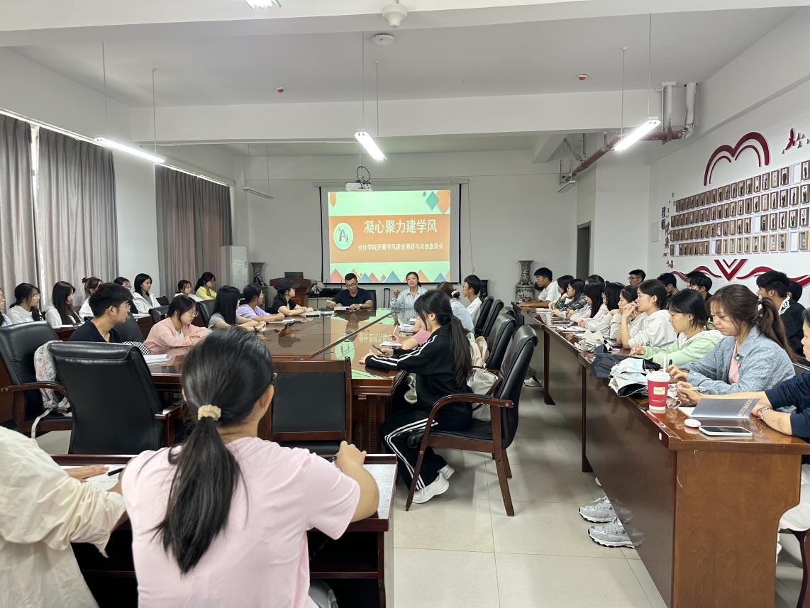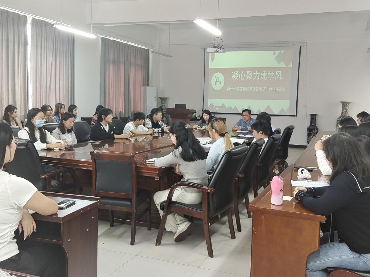 副院长邱静(主持行政工作)、党委副书记胡闽、党委副书记黄忠莉、副院长周松分别与会计学专业、财务管理专业学生代表进行座谈,学生代表们围绕学习生活中的实际问题踊跃发言,现场氛围热烈而务实。通过座谈会精准把握学生学习需求,破解当前学风建设中的痛点难点。
