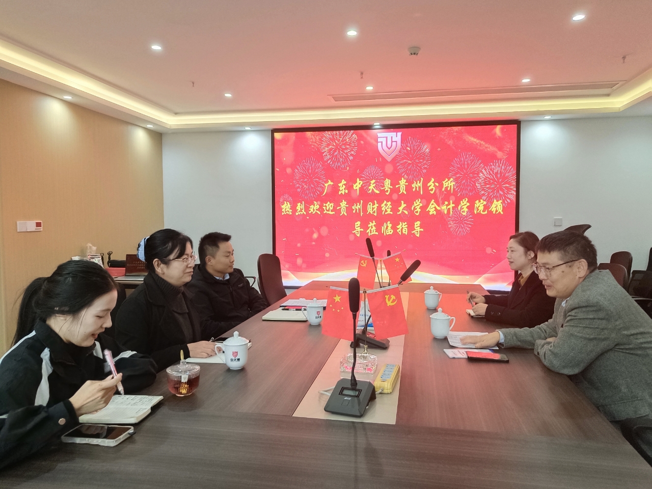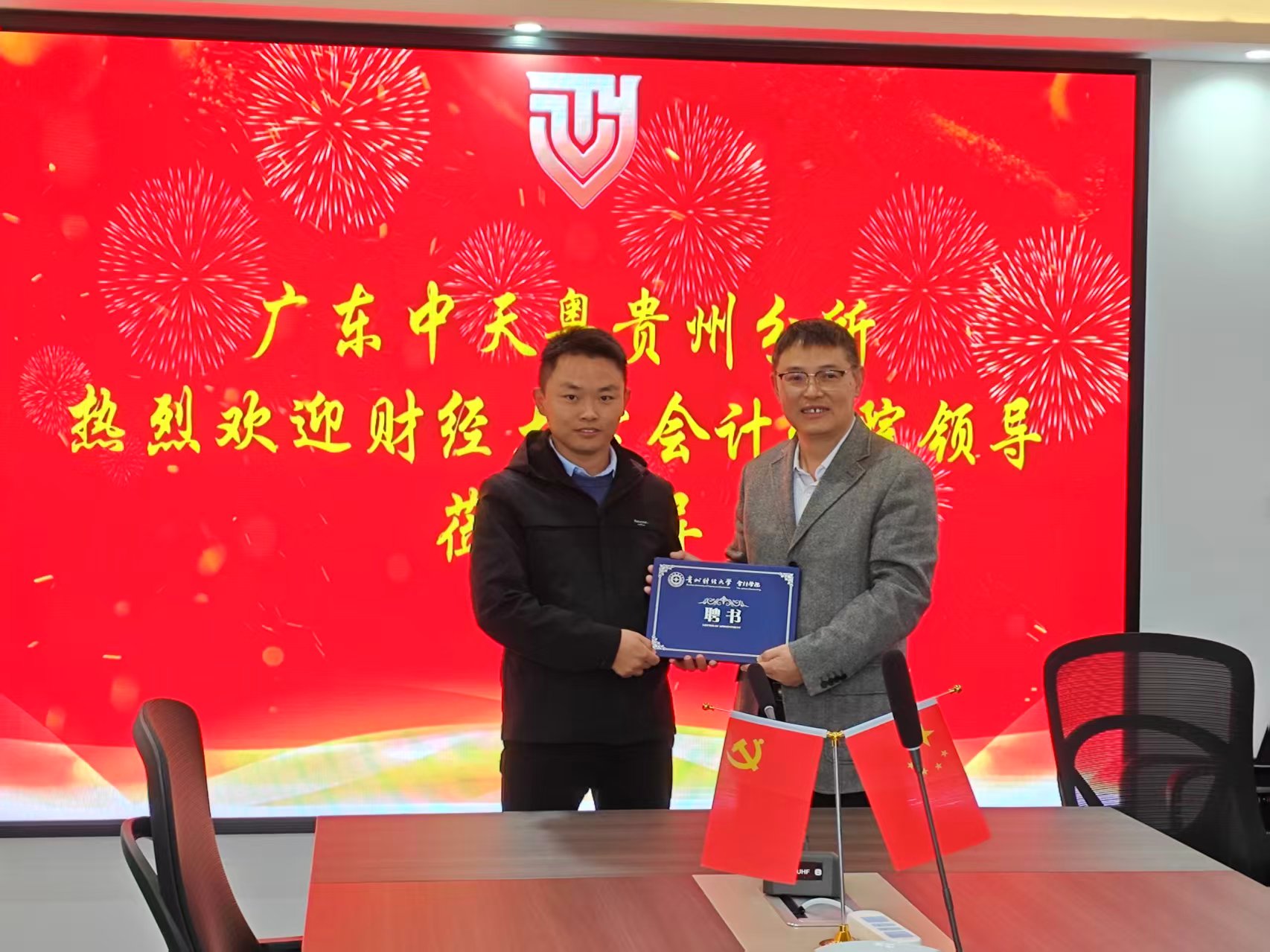 党委书记王志亮、党委副书记黄忠莉一行赴全国百强会计师事务所 ——广东中天粤会计师事务所(特殊普通合伙)贵州分所开展访企拓岗活动,并举行产业导师聘任仪式,为事务所专家颁发产业导师证书。