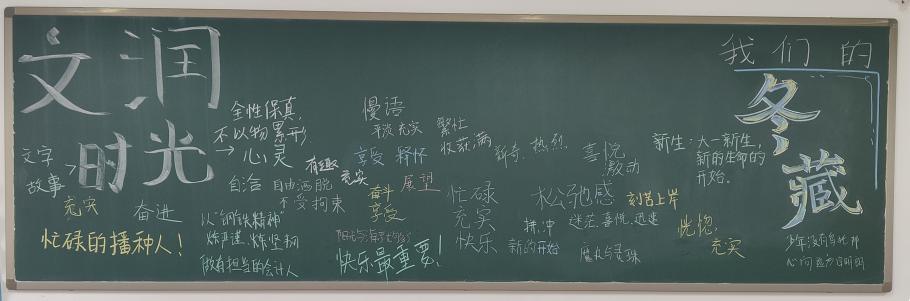 活动伊始,张荣轩同学通过“藏知识、藏故事、藏智慧”三大板块,为现场同学打造了一场兼具文化温度与思想深度的交流盛宴。她不仅鼓励同学们借安静时光积累知识,还特别推荐了三本书籍,既帮助大家挖掘阅读乐趣,提供了兼具思想深度与阅读温度的读物,也为同学们增添了更多有深度的阅读选择。在书籍分享环节,同学们踊跃登台,有的共情《苦菜花》里冯大娘一家的抗争与牺牲、军民的不屈与坚守,有的沉浸《太阳照在桑干河上》里贫苦农民的苦难与觉醒、翻身路上的挣扎与新生,还有的分享实用工具书带来的时间管理方法等等。同时,杨胜丽老师还分享了个人的阅读习惯,建议同学们将专业书籍与人文读物相结合,通过广泛阅读来拓宽自身的认知边界,以人文书籍滋养心灵、沉淀思想,让阅读成为助力成长的持久动力。活动最后,在张荣轩同学的带动下,大家走到台前的黑板前,拿起粉笔写下了自己专属的冬日关键词,“快乐”“充实”“奋斗”等字眼字眼错落排布,为这场读书交流会画上了圆满的句号。