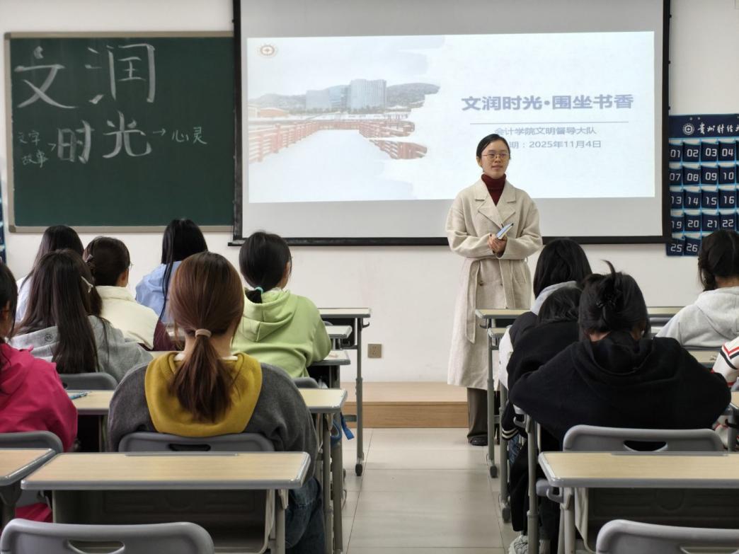 校园文明督导队于文渊楼2-3组织开展“会院书香”系列活动第八期——“文润时光,围坐书香”读书沙龙交流会。校园文明督导队指导老师杨胜丽出席此次活动。