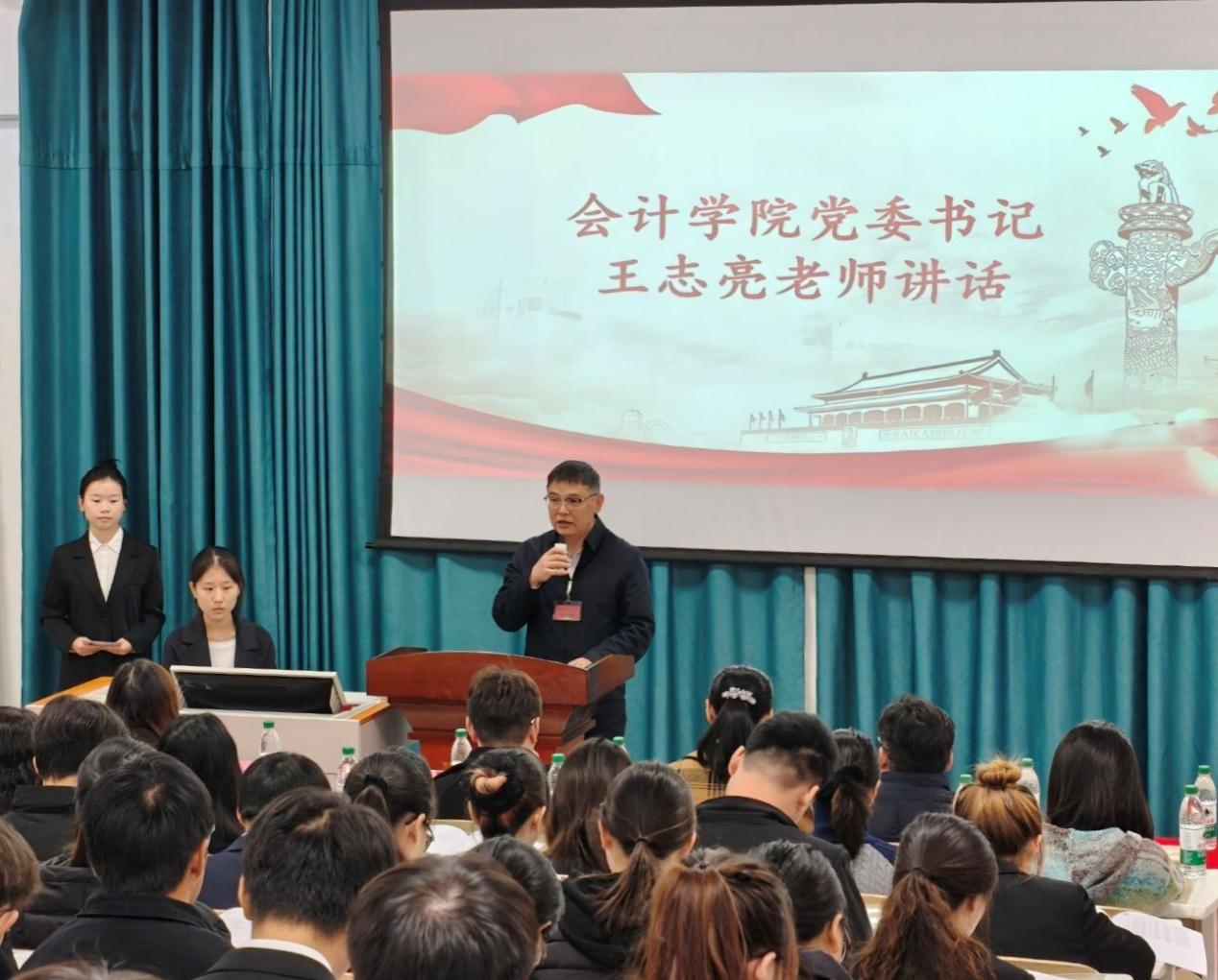 党委书记王志亮讲话,他对学生代表提出了三点期许:一是做理想坚定的表率,把个人理想锚定民族复兴征程,将红色基因融入血脉;二是做勤学读书的表率,在学习中展现智慧,在竞赛中勇于攀登;三是做担当实干的表率,立足学业科研,脚踏实地、精益求精,在国家发展的关键领域、社会需要的重要岗位上发光发热,用实干书写无愧于青春、无愧于时代的精彩答卷!