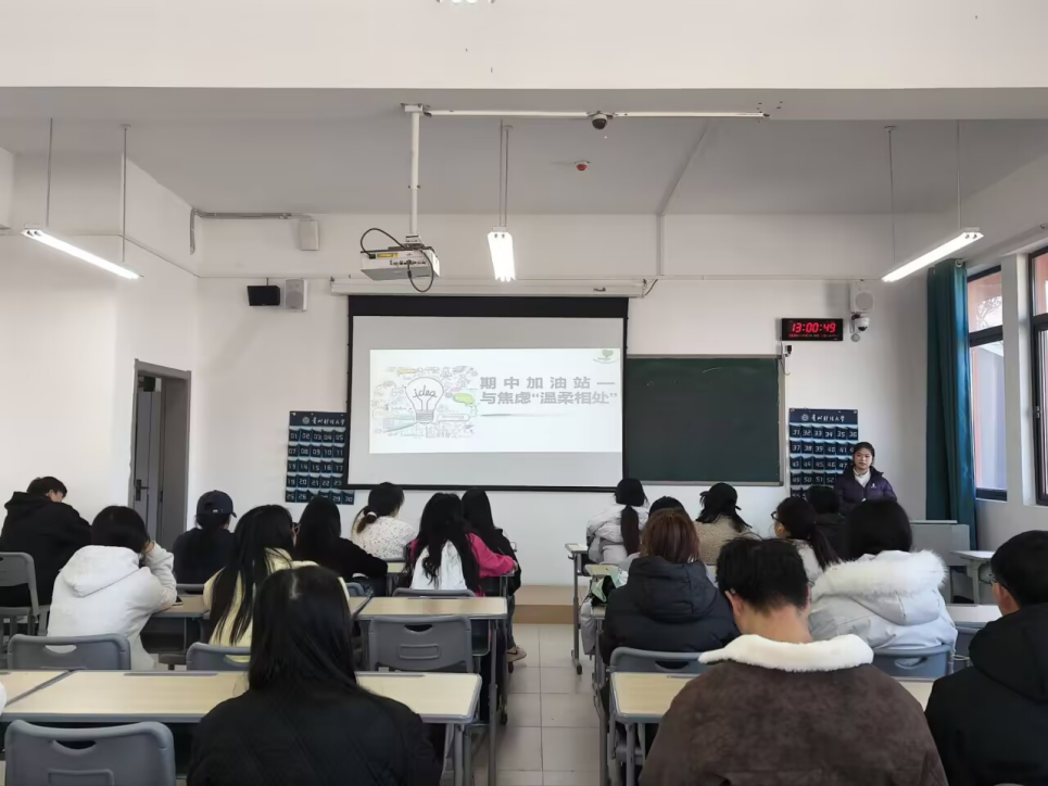 心理协会在文渊楼2-4组织开展“期中加油站——与焦虑‘温柔相处’”心理健康教育主题活动。本次活动由王洁云同学主持,各班心理委员及心理协会全体成员参加。