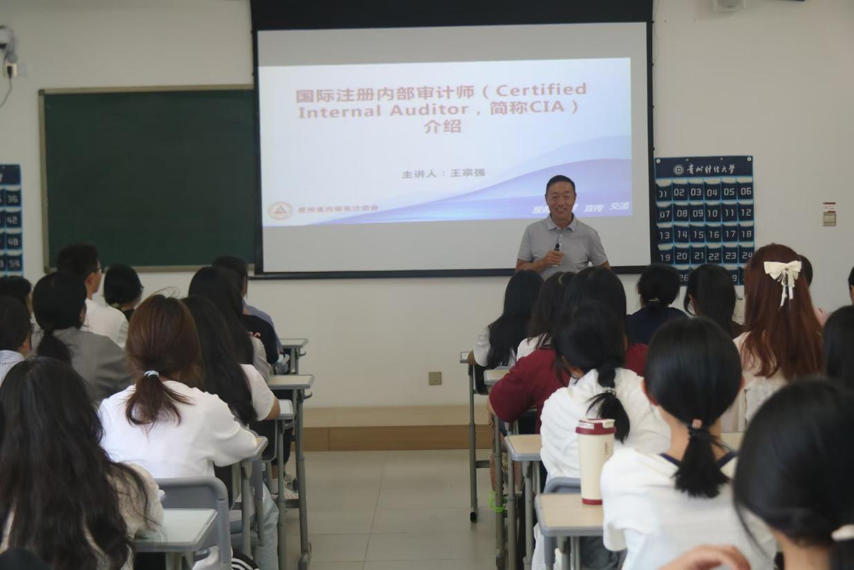 2024年9月24日下午,贵州省内部审计协会副秘书长兼办公室主任王宗强先生为pc28预测 学生开展了“国际注册内部审计师”推荐讲座,pc28预测 24级本科、24级研究生同学60余人参加了讲座。